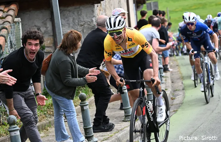 UAE Team Emirates - XRG drückte das Tempo wirklich hart beim Anstieg nach Itzua, aber das Gelbe Trikot wusste nicht, dass sein Hauptkonkurrent Florian Lipowitz während des Anstiegs einen Fahrradwechsel benötigte. "Die erste Frage war mir nicht bekannt. Den ganzen Tag über war das Tempo wirklich hart, eine super harte Etappe, die ‚Etappe der Etappen‘.“