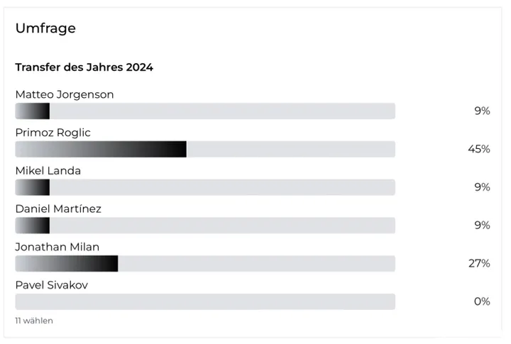 Einige von Ihnen haben an der Abstimmung der zweiten Preiskategorie der RadsportAktuell Saisonende-Auszeichnung 2024 teilgenommen und am Ende, nach einem umkämpften Duell, hat Roglic die anderen Nominierten wie den Zweitplatzierten