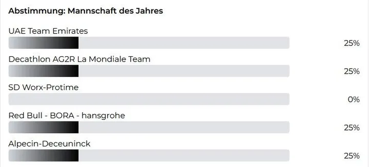 Alpecin-Deceuninck fielen. Lediglich das Team SD Worx-Protime bleibt bei 0%.