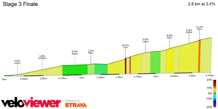 Nach einem Sprint- und einem Bergfinish wartet nun ein gemischter Tag. Die 3. Etappe führt über hügeliges Terrain und endet mit einem interessanten Finale. Sie ist wie gemacht für Puncheure – oder für robuste Sprinter wie