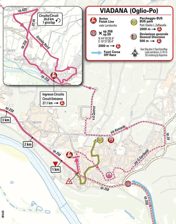 Der Tag beginnt mit kräftigem Gegenwind, was es frühen Ausreißversuchen schwer machen dürfte. Erst nach dem ersten Zwischensprint – rund 113 Kilometer vor dem Ziel – dreht der Kurs, und mit ihm der Wind: Plötzlich wird aus Gegenwind Rücken- und Seitenwind, besonders auf den offenen Flachpassagen rund um Viadana. Ein hohes Tempo wird garantiert sein – mit Schnittgeschwindigkeiten jenseits der 50 km/h – und genau hier liegt das Gefahrenpotenzial.