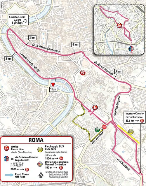 Das Rennen endet mit einer flachen Etappe in Rom, 141 Kilometer, auf der die Sprinter ihre letzte Chance auf Ruhm haben. Es ist ein Tag des Feierns, da die Fahrer endlich das Ende des Rennens erreichen und einen kurzen und flachen Tag rund um die Hauptstadt genießen können, wobei der letzte Rundkurs den Sprintern vorbehalten ist;