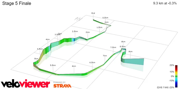 Zwischen 5 und 2 Kilometern gibt es mehrere Kurven, in denen das Gleiche passiert und die Spannung konstant bleibt. Auch die Geschwindigkeiten werden nach einem leichten und flachen Tag sehr hoch sein. Die letzte Kurve befindet sich 700 Meter vor dem Ziel, eine scharfe Linkskurve, die in das große Finale der Allee mündet.