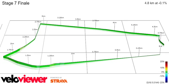 Das Finale besteht dann aus drei sechs Kilometer langen Runden außerhalb des Stadtzentrums, die sehr schnell sein werden. Drei 90-Grad-Kurven kennzeichnen diese Runde, sie ähnelt einem Kriterium. Die letzte Kurve kommt 1,8 Kilometer vor dem Ziel, und das Finale wird völlig geradlinig und flach sein.