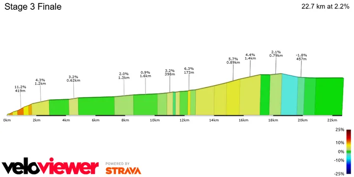 Der dritte Renntag ist ein gemischter Tag, an dem viele Szenarien die Etappe entscheiden können. Mit 240 Radkilometern wird es ein langer und anspruchsvoller Tag, an dem einige Anstiege auf dem Programm stehen. Ein kleiner Massensprint oder eine späte Attacke kann an diesem Tag gelingen.