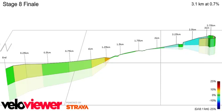 Das sorgt für einen interessanten Sprint – keinen klassischen, sondern einen, bei dem auch Form und ein gutes Bergbein eine Rolle spielen könnten. Insgesamt dürfte das Profil aber nicht steil genug sein, um echte Sprinter aus dem Kampf um den Sieg zu nehmen.
