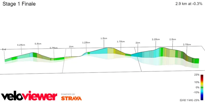 Das wird nicht einfach, denn es ist kein Finale mit scharfen Kurven oder Straßenmobiliar, sondern die letzten Kilometer führen im Zickzack durch ein Tal mit kleinen Steigungen und Gefällen, so dass sich die Teams von Anfang an gut positionieren müssen. Von 1,2 Kilometern bis 400 Meter vor dem Ziel geht es leicht bergauf, und die letzten 400 Meter neigen sich dann langsam nach links und weisen eine leichte Steigung auf.